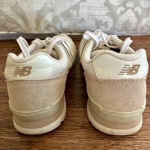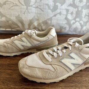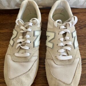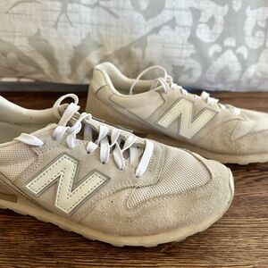 Sleek off-white shoes with signature New Balance emblem. Perfect for everyday wear.