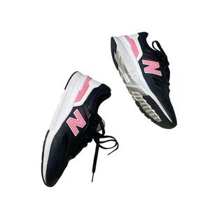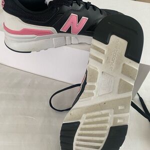 Step out in style and comfort with these New Balance 997H sneakers. Featuring a classic black upper with pink logo accents and white midsoles, these kicks blend sporty design with everyday wearability. Lightweight, cushioned, and versatile — perfect for casual outfits or athleisure looks.