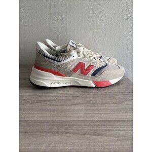 The product is a pair of New Balance 997R sneakers in a men's size 13. The shoes feature a multicolor design with a white, grey, red, and blast red color scheme. Made with linen upper material, these athletic shoes belong to the New Balance D product line and have a stylish sneaker design. Perfect for those looking for a comfortable and fashionable footwear option.