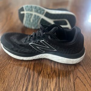 Stylish black running shoes by New Balance. Perfect for athletic activities.