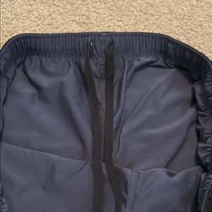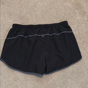 Sleek black running shorts with gray trim.. Lightweight and breathable with elastic waist and drawstring. Features New Balance reflective logo.