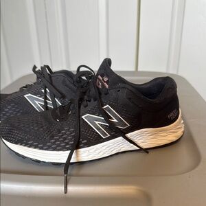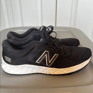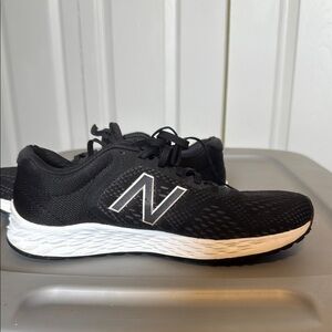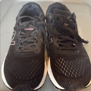 Sleek black sneakers with a textured design. Features a comfortable white sole. Perfect for running or casual wear.