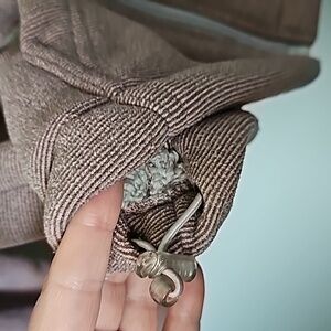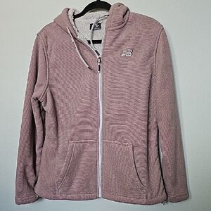 So soft and cozy. Drawstring on inside of bottom. Hood and pockets. Color is like a pinkish lavender with gray interior. Great condition. Neutral, casual, outdoor, outing
