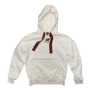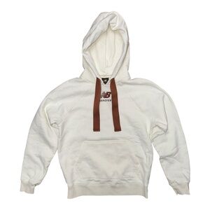 Embrace comfort and style with the New Balance cream and brown hoodie, featuring a prominent hood and a sleek half-zip design. Made from soft, fleece-like fabric, this sweatshirt offers a relaxed fit ideal for everyday wear.