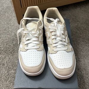Never worn. Sleek New Balance shoes in cream and white. Ideal for everyday comfort.