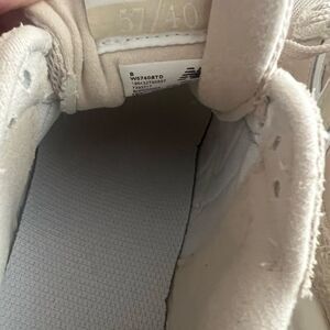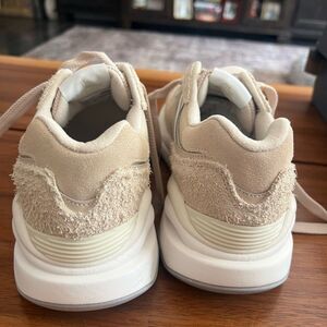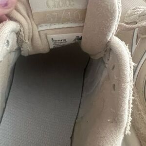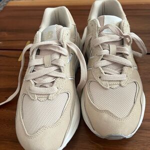 Stylish cream sneakers by New Balance. Perfect for casual wear. The 57/40 is the answer to a question that is simple, yet astronomical in scale. What if we updated the most New Balance shoe of all time – the 574? Despite its legacy of unassuming, almost effortless versatility, the original 574 was a unique design for its era, a hybrid road/trail design that didn’t lean on visible technical features. The 57/40 approaches the hybrid concept with a few extra years’ worth of design developments to explore, and creates a new perspective on an iconic design. An overall sleeker silhouette provided by a slimmer last combines with a range of exaggerated features. The unique midsole combines a flared take on the classic 574 construction with ‘90s tech inspired details. From smoke free home. Brand new in Box. Box has some scuffs due to shipment.