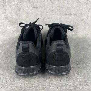 The New Balance DynaSoft Nitrel v4 Trail Running Shoes in Men's Size 9 2E Black are designed for outdoor activities such as mountain running and jogging. Featuring a low top shoe shaft style and lace-up closure, these sneakers offer comfort and breathability with cushioned support. The black color and athletic design make them suitable for various performance activities like gym training and walking.