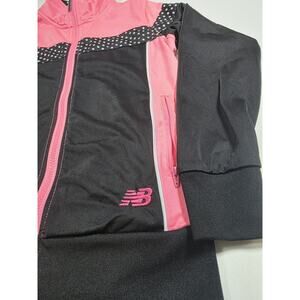 New Balance Girls 10/12 Pink And Black White Stars Zip Up Jacket. Condition is Pre-owned - Excellent. Shipped with USPS Ground Advantage.
