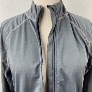 New Balance Gray Jersey Knit Track Jacket Zip Front Waffle Under-Sleeves Size SM