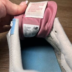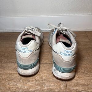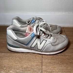 Comfortable gray sneakers with blue and white details. Classic New Balance design.