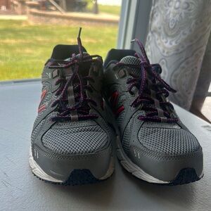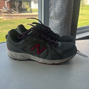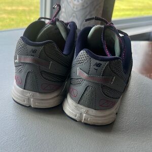 Comfortable New Balance shoes with gray mesh and pink details. Ideal for running and everyday use.