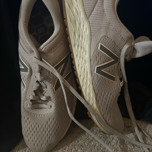 Stylish grey athletic shoes with a comfortable design. Features the iconic New Balance logo. Size 11