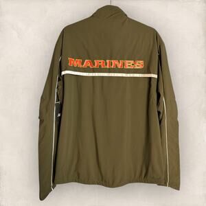 New Balance Jacket Mens Medium Tall Green USMC Marine Running Windbreaker Track Coat