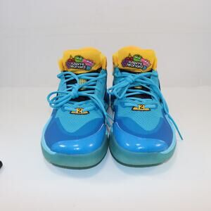 New Balance Kawhi Leonard “Jolly Rancher” signature basketball shoes, men's size 10.5. Rare colorway in blue and yellow with translucent outsoles, cartoon tongue patch, and candy-inspired detailing. Last sale on StockX was $244