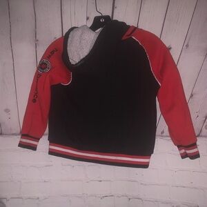 Bold New Balance jacket with striking red and black colors. Ideal for warmth and style.