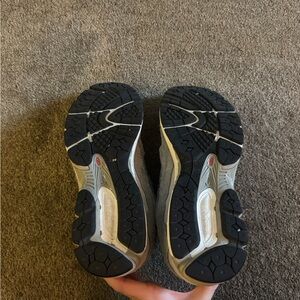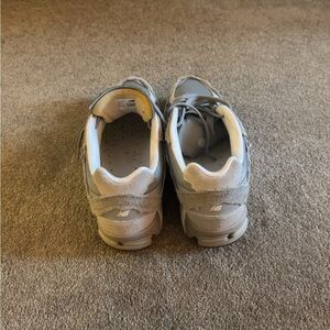 Light gray athletic shoes with cushioned support. Ideal for everyday activities.
