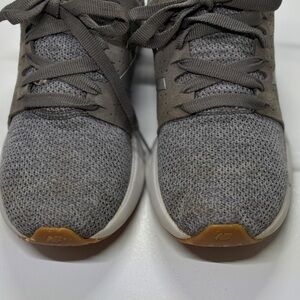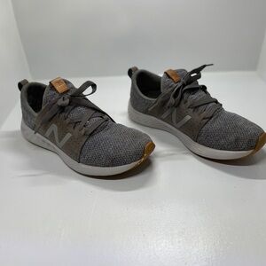 Charcoal sneakers with tan accents. Features New Balance logo.These are in great shape with lots of wear left in them a little bit of stains on the toes See photos for details. Feel free to request more information and or make me an offer.