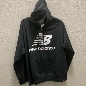New Balance NB Black Logo Pullover Hoodie Black Men Size 1X Front Pocket