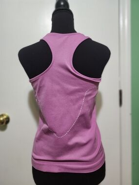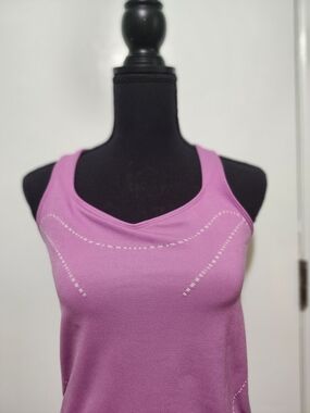 Sleeveless racerback tank in a vibrant pink shade. Breathable knit with subtle perforated accents. Streamlined fit for active or casual wear. Lightweight fabric that layers easily.