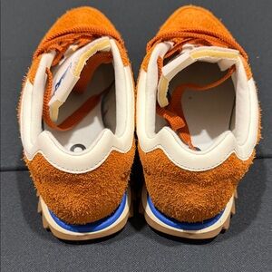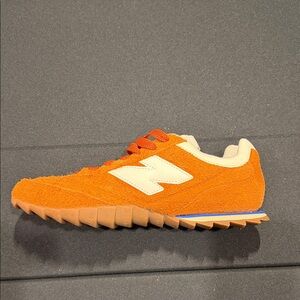 Bold rust color with a textured finish. Comfortable and stylish for everyday wear. Features signature New Balance logo.