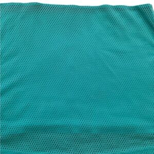 Color-blocked tank with a racerback design. Ideal for active wear. Navy top, white stripe, teal bottom - mesh on back.