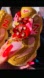 Sneakers with red and gold embellishments. Adorned with charms and bows. New Balance 9060. Big kids size 6. Women’s 7.5
