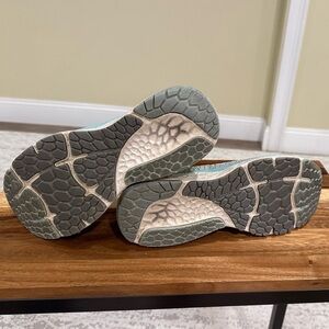These shoes have been worn a few times to run errands only. Please note there is a spot on the lefty toe. Please photo on insole and treads to note there is no wear.