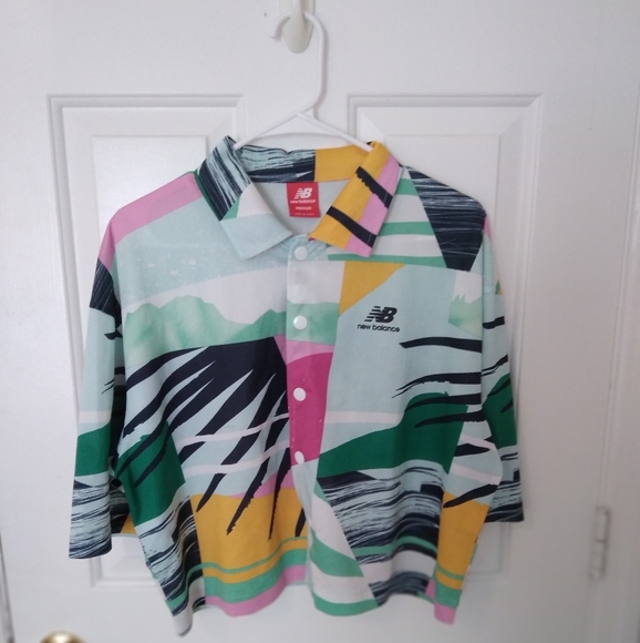 New Balance Women's Medium Snap Up collared shirt. Very 90s retro. 100% polyester