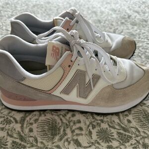 Stylish New Balance shoes for women. White, gray, and tan design. Perfect for everyday wear. Size 10.5 women’s. Just washed and air dried! EUC! Bundle with other items in my closet to save on shipping. 📦