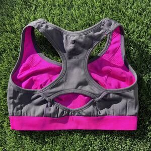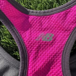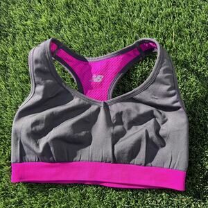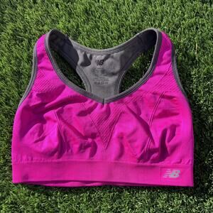 New Balance Sports Bra Womens Small Pink Gray Racerback Seamless Mesh Athletic Gym