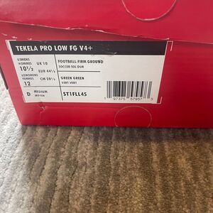 Up for sale is a pair of brand new New Balance Tekela Pro Low FG V4+ soccer cleats in a mens size 10.5. It comes with the box and is 100% authentic. Thanks for your interest!