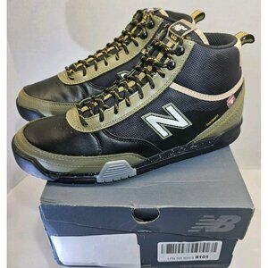 The New Balance Unisex NB Numeric 440 Trail Sneakers in size Men's 10.5/Women's 12D are a versatile and stylish footwear option suitable for various activities. With a high top shoe shaft style and lace-up closure, these sneakers offer a secure fit and support. Made with a rubber sole material and featuring cushioning, non-slip, orthopedic, and breathable properties, these shoes provide comfort and stability for activities such as running, hiking, weightlifting, and more. The olive and black color scheme, along with the 2023 release year, make these sneakers a trendy and practical choice for both men and women.