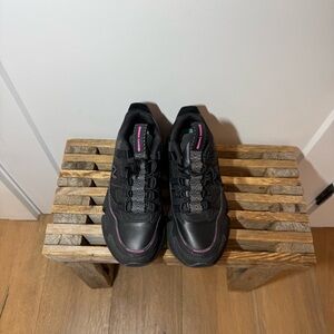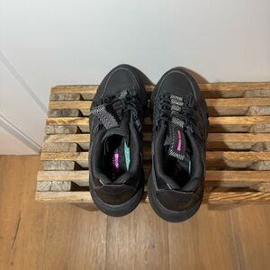Stylish and comfortable, these New Balance kids' sneakers feature a sleek black design with vibrant pink accents. Perfect for everyday wear, they offer durability and support for active kids. Mens 6 womens 7.5