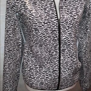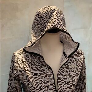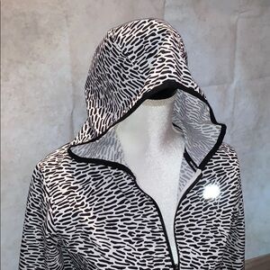 New Balance Windbreaker with Reflective “NB” on upper left, black and white, lightweight w/ hood for those sudden cloud bursts!