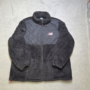 New Balance Womens 2x Fleece Quilted Jacket Sherpa Black Zip Front Elastic Hem