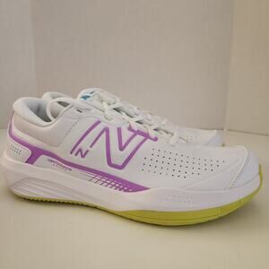 New Balance Women's 696 V5 Hard Court Tennis Shoe, White/Purple Fade, 10