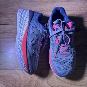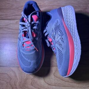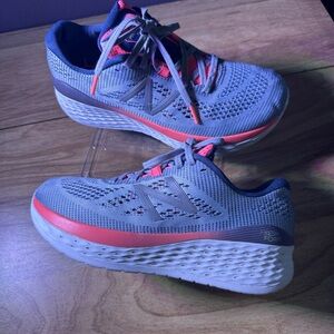 Sleek design with breathable mesh. Gray with pink accents. Ideal for running and workouts.