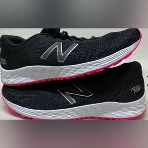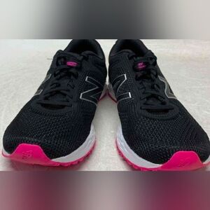 Experience comfort and style with New Balance women's running shoes. Featuring a sleek black design with vibrant pink accents, these shoes are perfect for your active lifestyle.