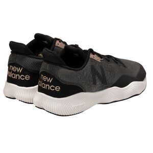 The New Balance Women's FuelCell Shift Tr V1 Cross Trainer in black and rose gold is a stylish and functional athletic shoe perfect for running and jogging. Featuring a lace-up closure and a low-top shaft style, these sneakers offer a comfortable fit with a foam insole and rubber outsole. With a solid color design and logo accents, they are suitable for both activewear and casual occasions, making them a versatile addition to any woman's wardrobe. Made in Vietnam, these trainers are part of the New Balance FuelCell product line, delivering both style and performance in one fashionable package.