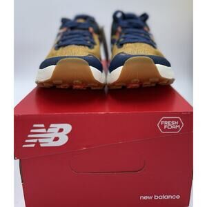 The product is a brand new pair of New Balance Women’s Sneakers in size 7.5 US. These sneakers feature a lace-up closure and are designed for athletic activities such as walking, hiking, and running. The design includes a combination of blue, gold, white, and orange colors, making it a stylish and versatile choice for active women. The fresh foam insole provides comfort and support for long periods of activity, making these sneakers a great option for those who enjoy outdoor adventures.
