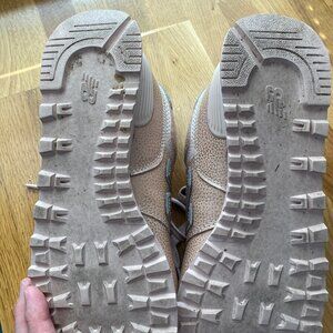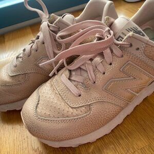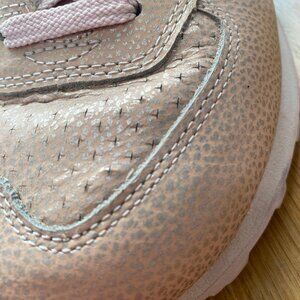Chic and comfortable New Balance sneakers. Light pink textured design. Perfect for everyday wear.