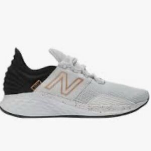 Gently used New Balance women's running shoes. White and black design, with copper details.