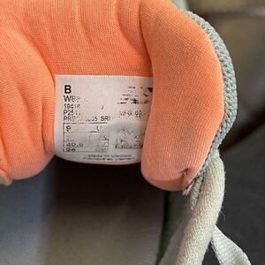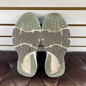 These running shoes are in great condition, their soles are white and there is no rips or tears on the upper. upper needs light cleaning to make the shoe look even better. The bottoms of the shoes have a bit of wear, but they aren’t bald there is definitely a lot life left on the thread of the shoe.