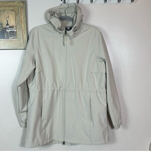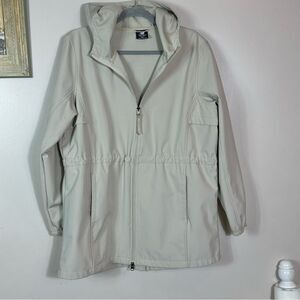 Stylish and versatile jacket. Features a hood and full zip closure. Perfect for any weather.