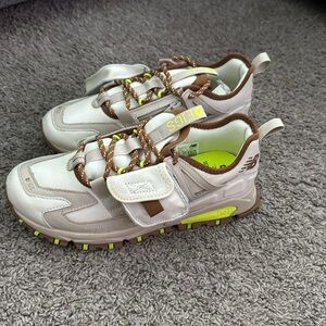 New Balance XFigs X-Racer Utility Cream and Brown Chunky Sneakers WM 7.5 MN 6