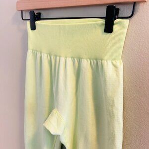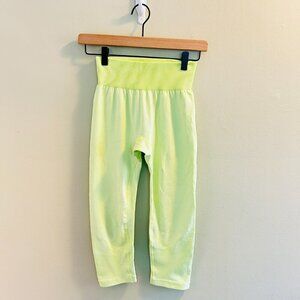 All orders ship in 1-3 business days! Bright workout tights Fair to good pre-owned condition/No holes—had hole in crotch and was resewn at crotch seam (pictured) /No pilling/No fade/ No stains/ Size and care tag cut out The color is neon green / yellow Size S High rise: 9.5” | Inseam: 18.5” | Waist: 10.5” (very stretchy, can stretch to 16”) Measurements are approximate! Pull on closure | ribbed waistband | cropped length Nylon / polyester / elastane blend Collab | Athleisure Outfits | Gym Clothes | Workout Gear | Yoga | Pilates | Running | Exercise | Fitness | Activewear | Performance Wear | athletic | sporty | jogging | cycling | bicycling | peloton | weight lifting | basketball | track | field | practice | trail | strength training | highlighter | bright colors | rave Smoke free home!