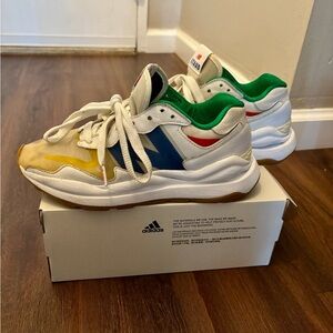 New Balance x Staud collaboration. Mens size 7 / Womens 8.5/9. Worn a hand full of times, has a lot of life left. Comes with all the colorful shoelaces. Original box not included. Comes from a smoke free/pet free home. Does have signs of wear, please look at all photos. Feel free to ask any questions/ more photos. Originally purchased from shopbop. Unisex sneaker.