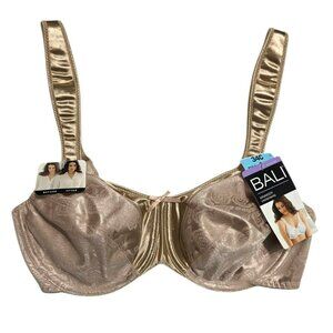 Designed with comfort and function in mind, this Bali minimizer bra reduces bust projection by up to 1¾ inches. Its underwire support ensures a flattering fit while the cushioned straps alleviate shoulder strain. The light beige tone and subtle pattern provide an elegant finish.