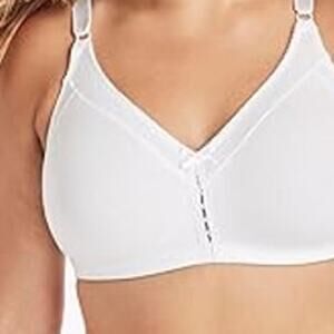 New Bali Womens 36D White Stretch Cotton Double Support Wire-Free Hook Eye Bra