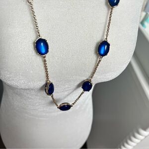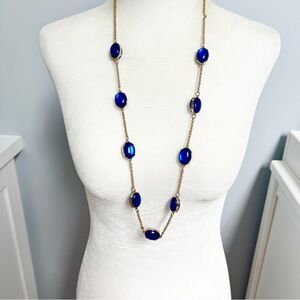 New Ballet Vibrant Peacock Blue Long Gold Station Elegant Statement Necklace